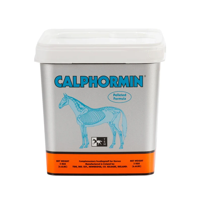 CALPHORMIN is a pelleted mineral feed for horses that contains essential Minerals, Trace Elements, and an Amino Acid crucial for normal bone growth and maintenance.