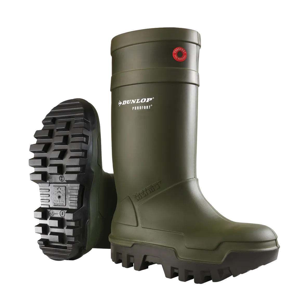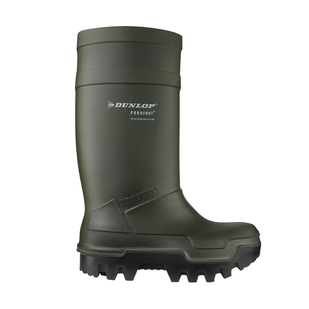 The Purofort boot is a strong and durable option designed for various agricultural applications, offering excellent thermal insulation for temperatures as low as -50°C. Its heat-retaining outsole ensures high comfort in cold conditions, while the slip-resistant design provides protection in icy or wet environments. The tear and wear-resistant shaft guarantees a long lifespan, and the boot is S5 rated with a steel toecap and midsole protection to guard against falling or penetrating objects. With an SRC rating, the dirt-repellent outsole delivers optimal grip on ceramic and steel surfaces coated with water or cleaning agents. The energy-absorbing heel enhances ergonomic support, and its lightweight design ensures a perfect fit for all-day wear.