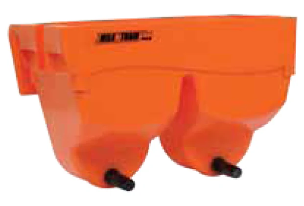 Double bucket calf feeding system withintegral carry handle. 10ltr capacity.Double units can be joined togetherwith the simple union mechanism.Hangs on gates, rail or wall. Stable,durable and robust.